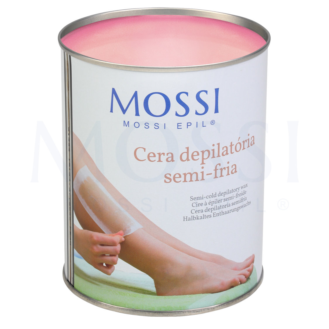 Cera depilatória textura intermédia - Ceras intermédias não secam rapidamente, sendo assim permite a profissional aplicar mais quantidade antes de remover a cera. As suas caracteristicas fazem com que exista boa aderência ao pêlo. Ceras intermédias podem ser usadas tanto no Verão quanto no Inverno. Cera de lata faz que a epilação se torne mais económica derivado ao preço e facilita a profissional a aplicar a camada de cera conforme deseja. Cera depilatória Mossi Epil.