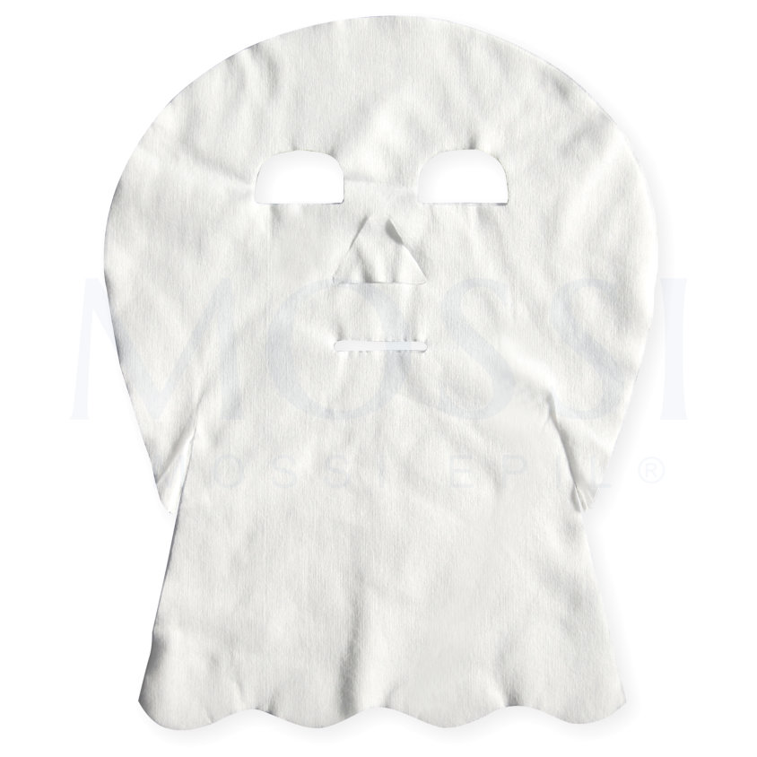 Máscara descartável facial de spunlace, para aplicar no rosto antes do uso de aparelhos de máscara térmica facial. Mossi Epil.