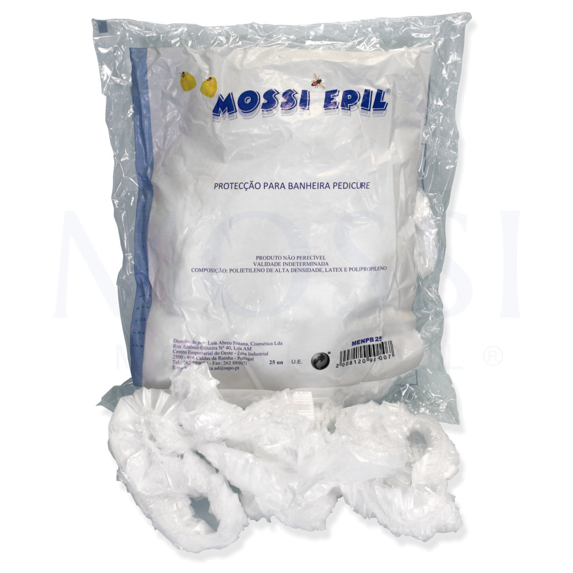 Proteção de banheira indicada para banheiras de pédicure, de tamanho grande. Contém elástico. A sua utilização garante uma higienização a 100%, menos tempo e despesa para lavar e desinfetar a banheira A utilização deste descartável permite o uso do programa da banheira massajador “vibratório”, mas não o programa de hidro massagem, porque as bolhas de ar já não vão ter contacto com a água. Uso único. Mossi Epil.