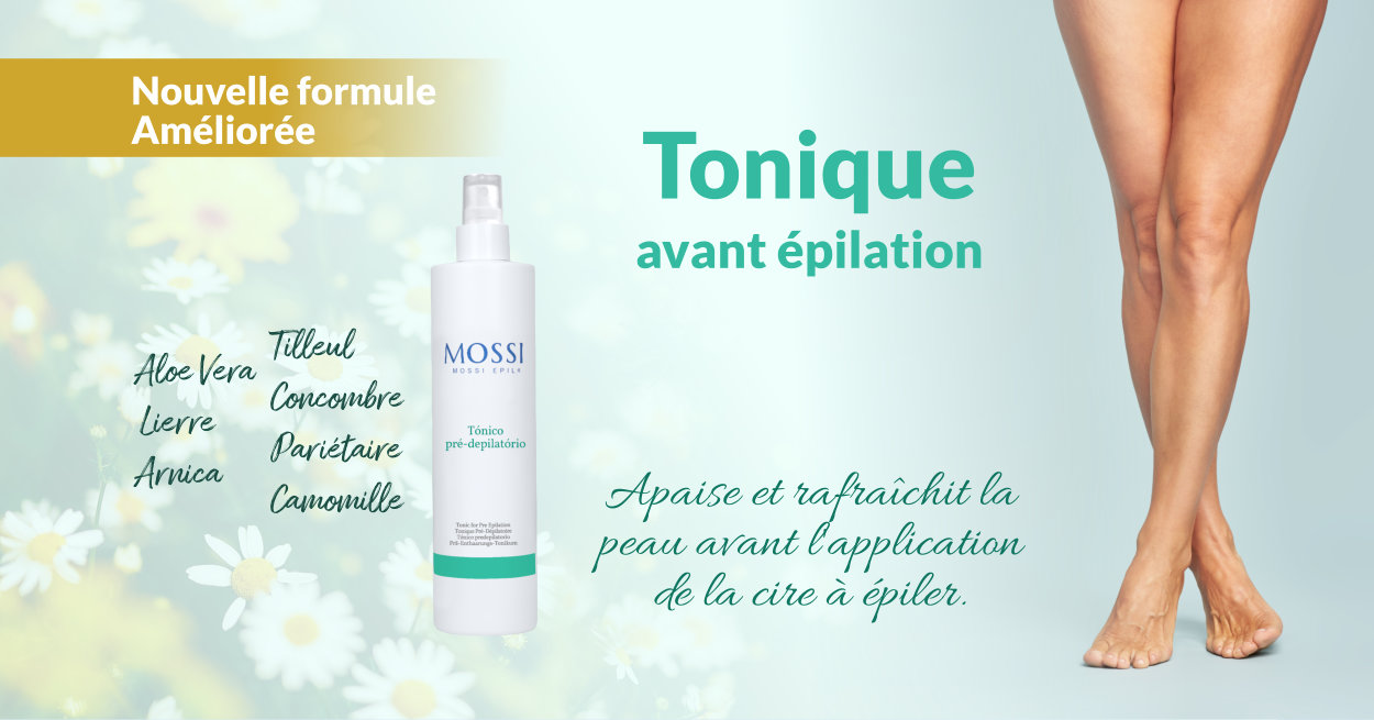 Avant chaque prestation, la professionnelle doit préparer la peau de sa cliente. Il existe plusieurs produits chez Mossi, mais il y en a un qui a été amélioré et qui remporte un franc succès : il s'agit du Tonique Pré-épilatoire, dermatologique 500ml. Vous sentirez moins la chaleur sur votre peau grâce à sa fraîcheur et il y a moins de risque que l'action thermique irrite votre peau, laissant vos pores moins rouges et dilatés, vous serez donc mieux préparée à recevoir la cire ou le LASER.