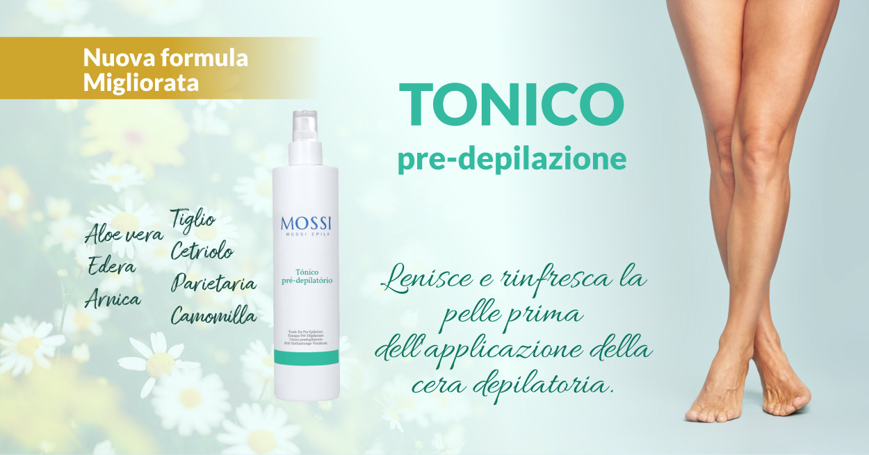 Prima di ogni servizio, il professionista deve preparare la pelle della sua cliente. Ci sono diversi prodotti Mossi, ma ce n'è uno che è stato migliorato e sta riscuotendo successo: si chiama Tonico Pre-Ceretta, dermatologico da 500 ml. Grazie alla sua freschezza, sentirete meno calore sulla pelle e ci saranno meno possibilità che l'azione termica irriti la vostra pelle, lasciando i pori meno arrossati e dilatati, così sarete più pronte a ricevere la cera o il LASER.