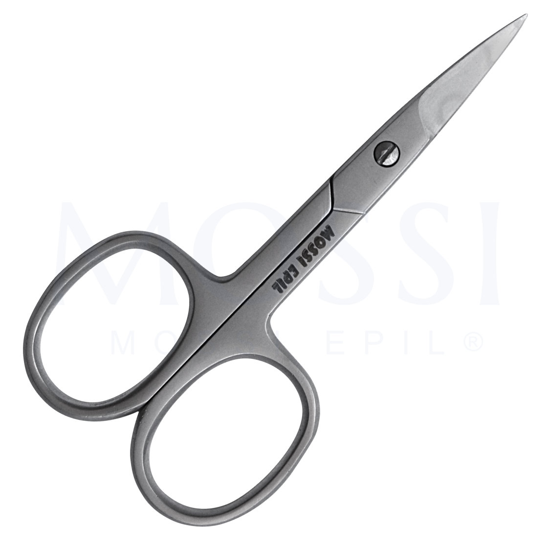 Tesoura em aço inoxidável de corte de cutículas ou unhas. Lâminas curvadas. Mossi Epil.