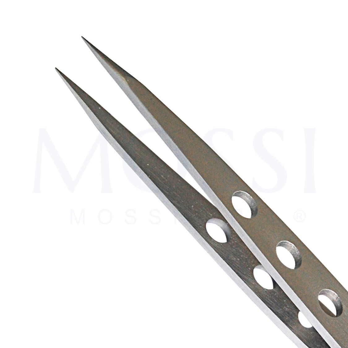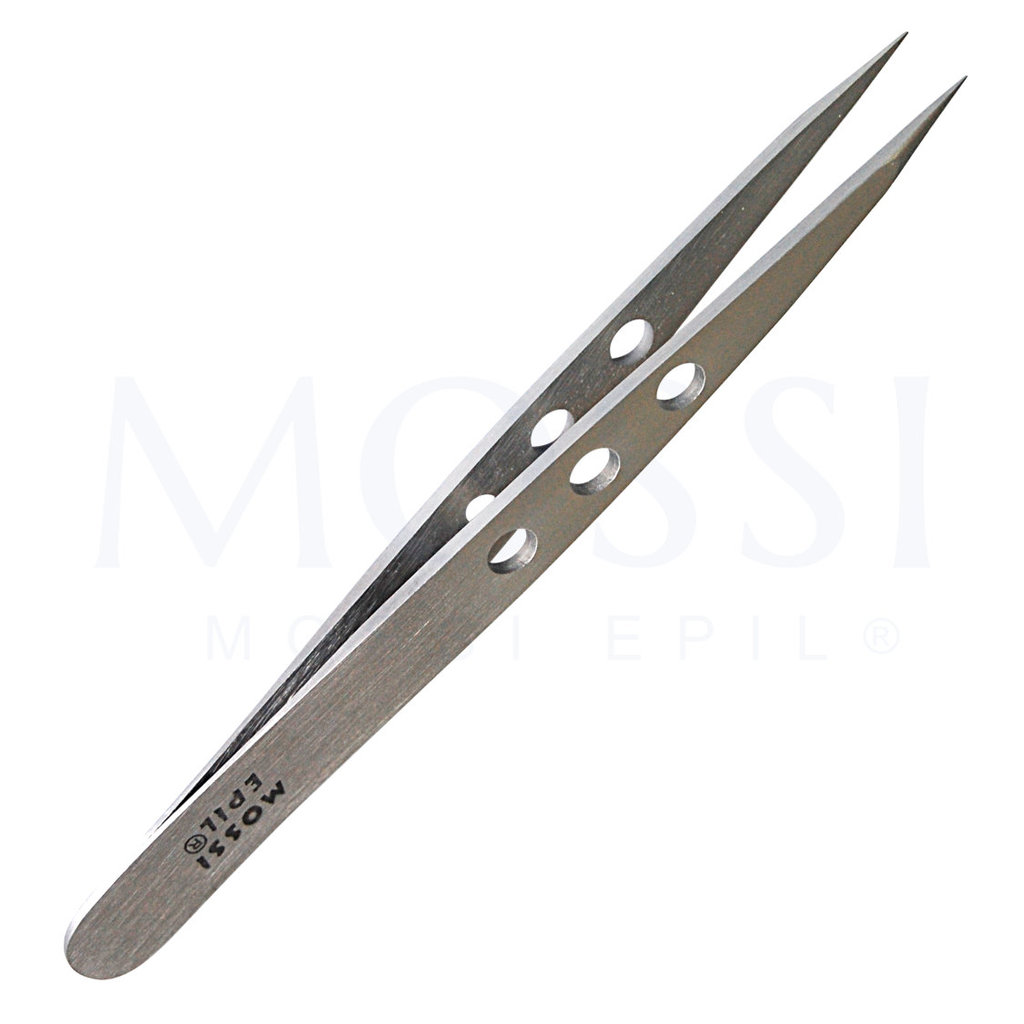 Pinça de bico para desencravar pelo encravado e para serviços de remoção de pelo quando é usado o método de eletrólise. Instrumento em aço inoxidável. Mossi Epil.