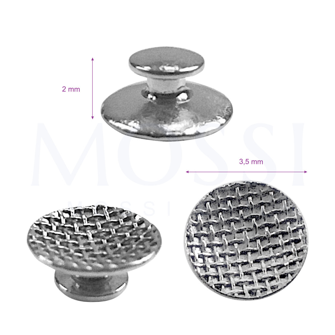 Schneiden Sie das überschüssige Gummiband mit einer Schere ab. Jeder Stift hat einen Durchmesser von 3,5 mm und eine Höhe von 2 mm. Mossi Epil.