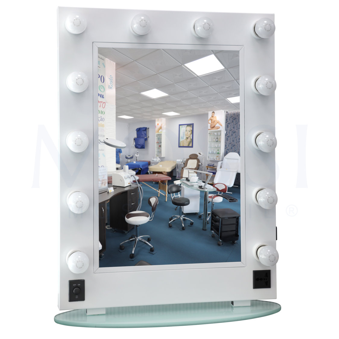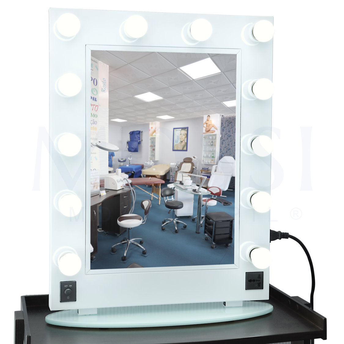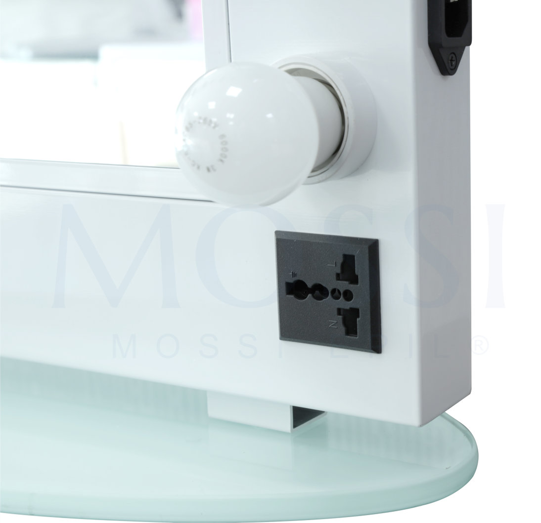 For make-up artists who require even more light, this mirror is supplied with 12 bulbs that provide ample light so that the professional can have more light on their client's face.