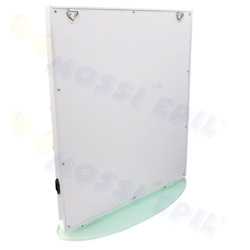 Dimensions of the mirror with base: height: 680mm x length: 495mm x width (of the mirror without base): 40mm - Dimensions of the glass base: 205mm x 515mm.