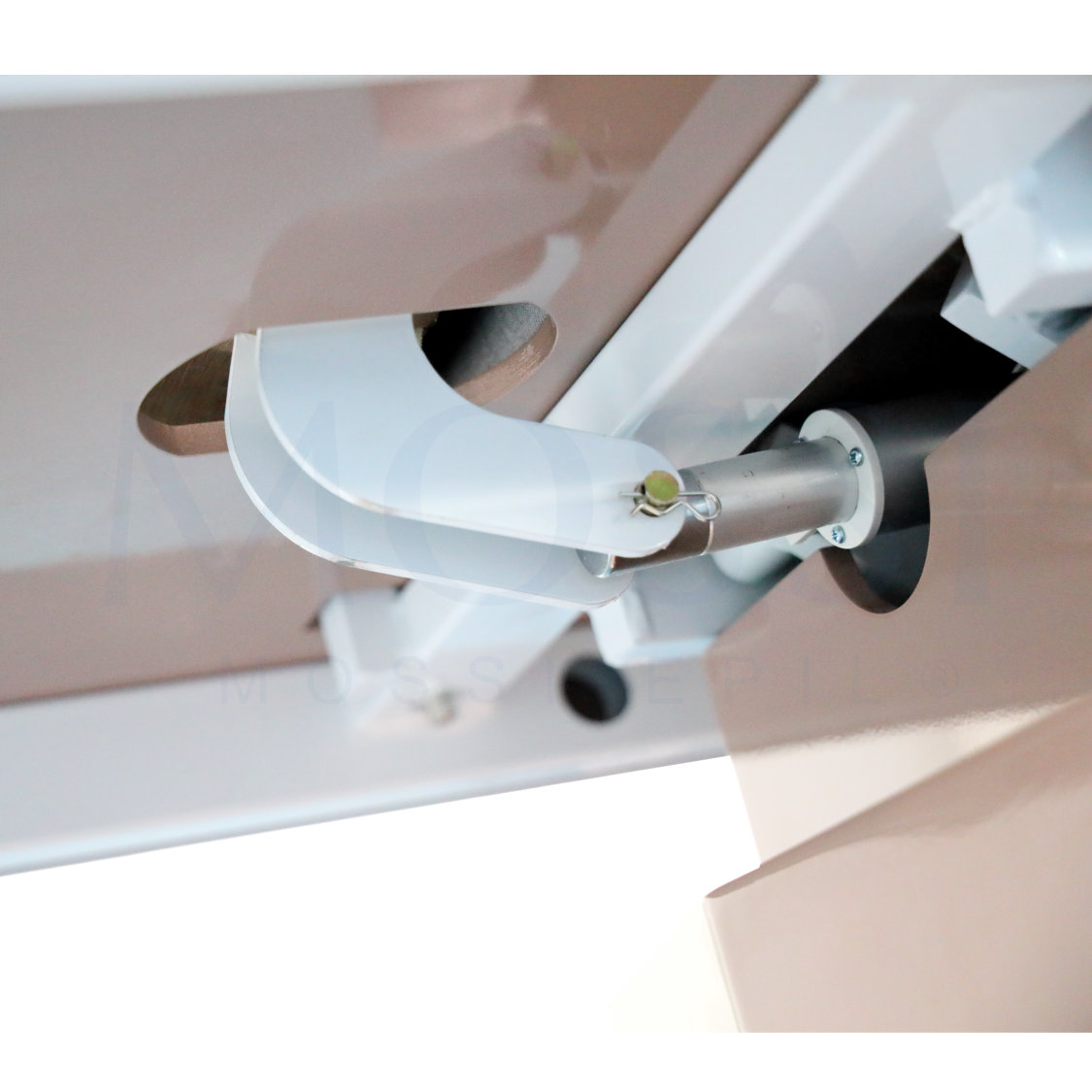 Sie ist höhenverstellbar, in der Neigung im Bereich des Kopfteils, das sich in einem Winkel zwischen 55º und 60º verstellen lässt, und in der Mitte der Beinauflage.