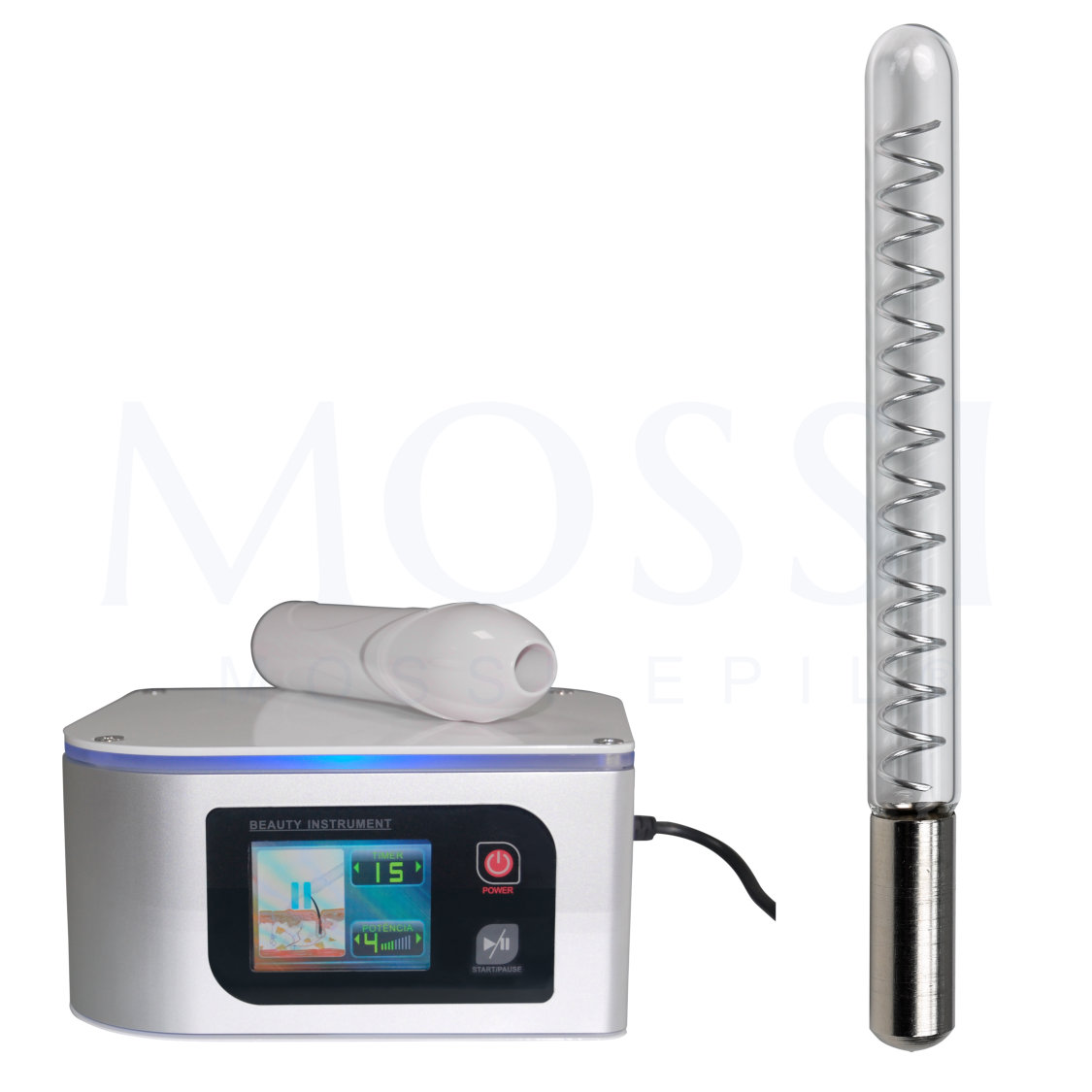 Este acessório de estimulação indireta serve para diversos tipos de tratamento utilizando um equipamento de alta-frequência. A alta frequência pode produzir corrente de vibração de alta velocidade e conduzir ao corpo humano por intermédio de um elétrodo em vidro eletroterapêutico. Diversos gases (neon ou argon) inertes são utilizados no respetivo elétrodo em vidro que emite uma luz mediante o gás inserido. Essas luzes emitem cores diferentes, proporcionando um efeito diferente no tratamento. Alta frequência produz vibração, calor e ozono com o electrodo em vidro eletroterapêutico, dando um efeito eficaz de ação bactericida e germicida. Esta corrente não tem nenhum efeito sobre músculos mas sim eficaz em estimular a epiderme e a fisiologia do organismo. Acessório para utilizar no equipamento com a referência : MEJHSBAFD - ALTA FREQUENCIA DIGITAL C/4 ACESSORIOS. Consulte o manual deste equipamento para mais informações. Mossi Epil